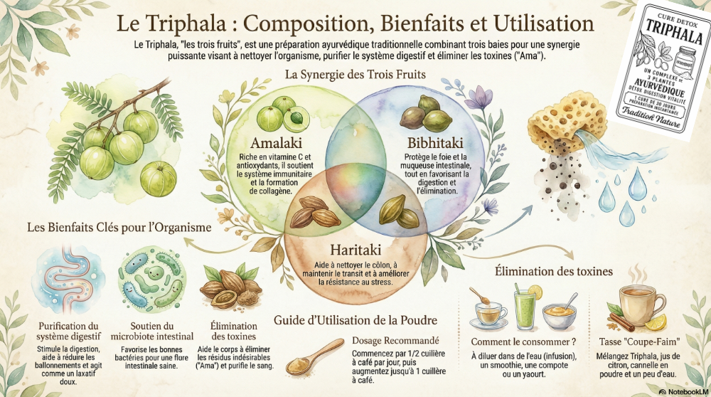 Connaissez vous le Triphala, un complexe naturel à base de trois fruits ? Amalaki, Bibhitaki et Haritaki. En sanskrit, Triphala signifie "trois fruits", car c'est un mélange de trois fruits ....