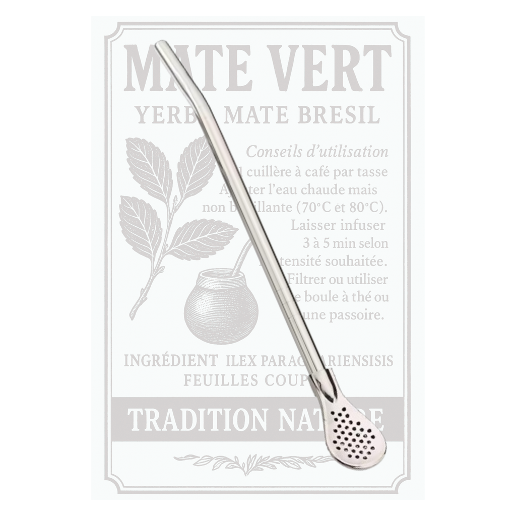 La bombilla est un accessoire traditionnel sud-américain indispensable pour déguster le maté. Il s'agit d'une paille en métal munie d'un filtre à l’une des extrémités, qui permet de boire l’infusion directement dans une calebasse, un mug ou une tasse sans avaler les feuilles !