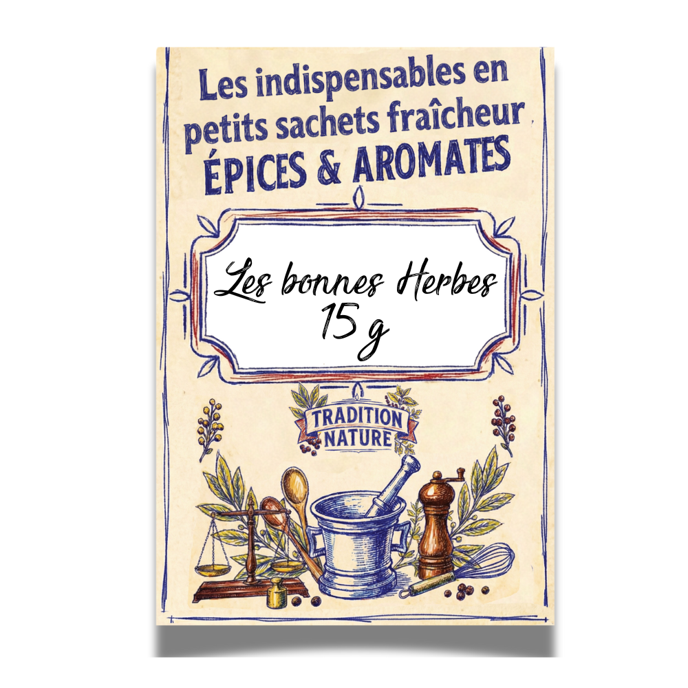 | 15 g | petit sachet cellophane | découverte / 4-6 plats |