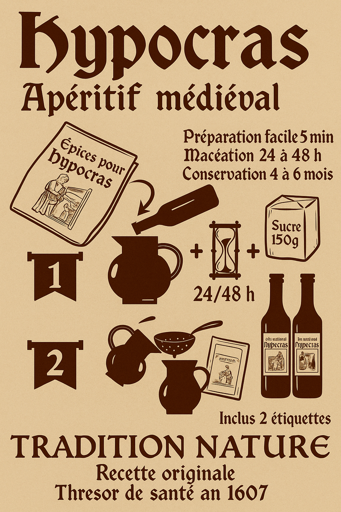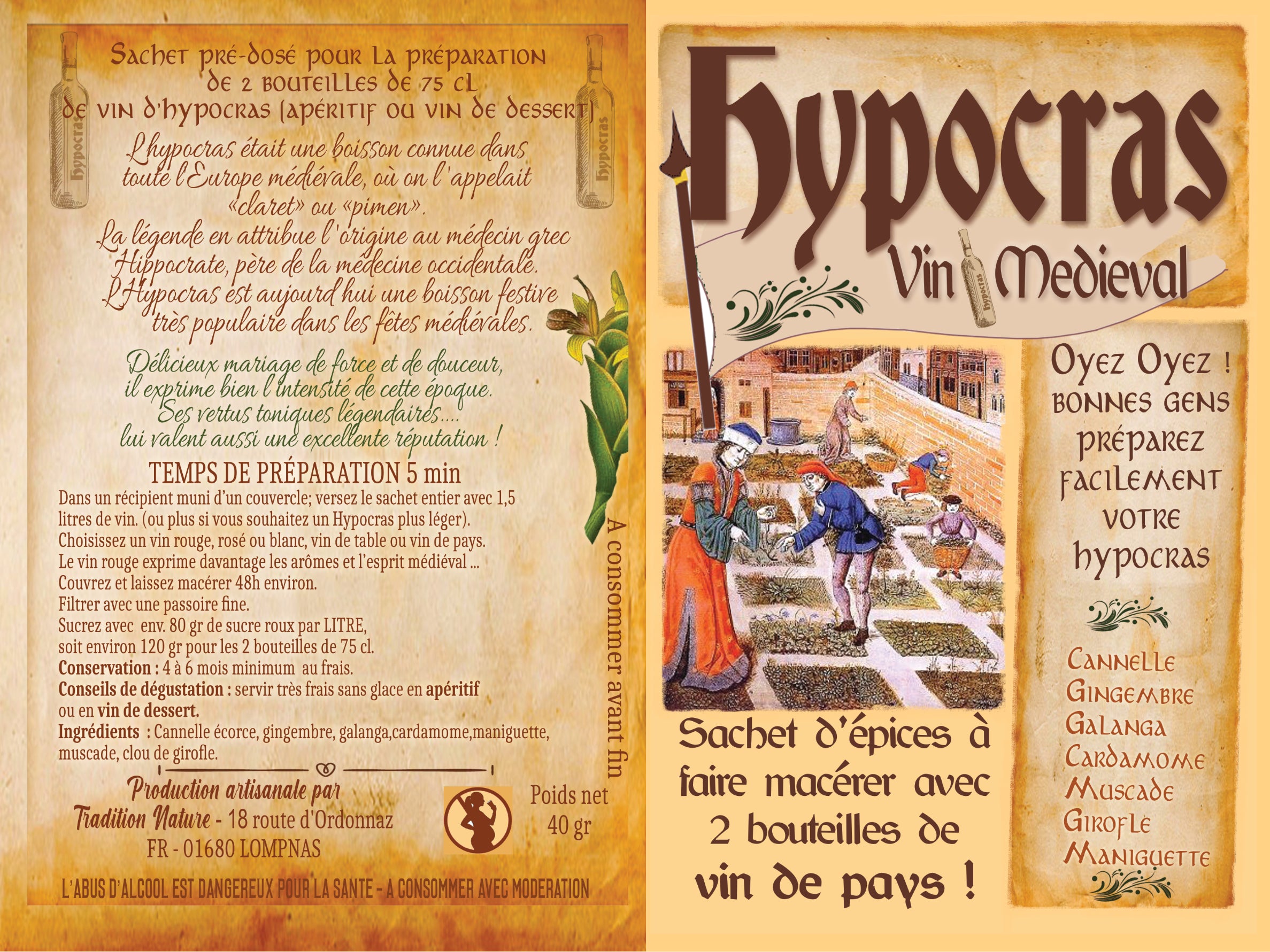 L'hypocras était très populaire au Moyen Âge et était souvent servi lors de banquets et de fêtes. Il était préparé en faisant macérer des épices dans du vin sucré avec du miel ou du sucre. Les épices utilisées variaient selon les recettes, mais la cannelle et le gingembre étaient souvent présents. La préparation était ensuite filtrée avant d'être mise en bouteille ¹.