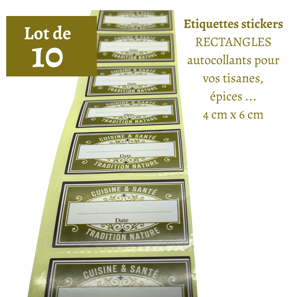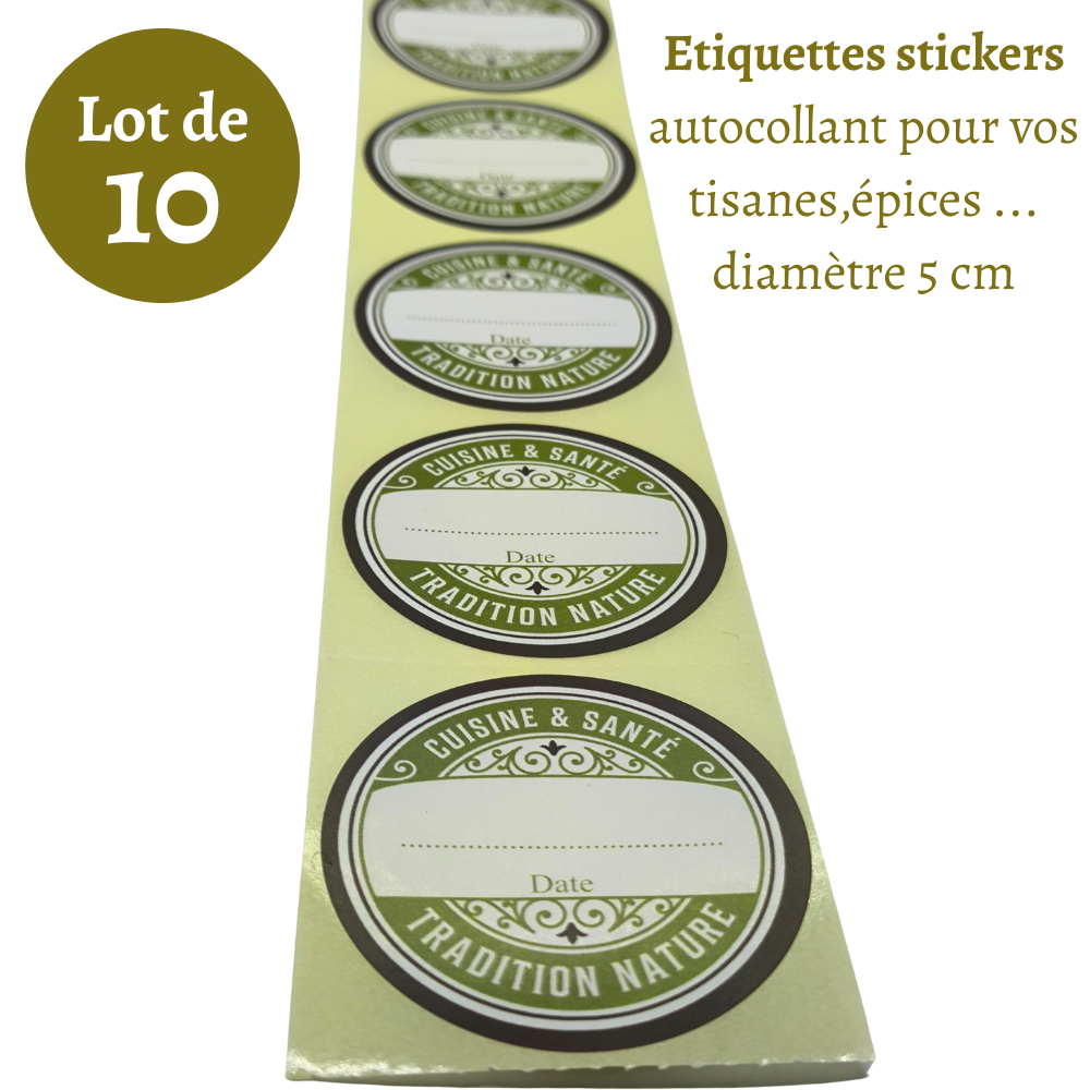 Lot de 10 étiquettes stickers boîtes tisanes,épices, thé