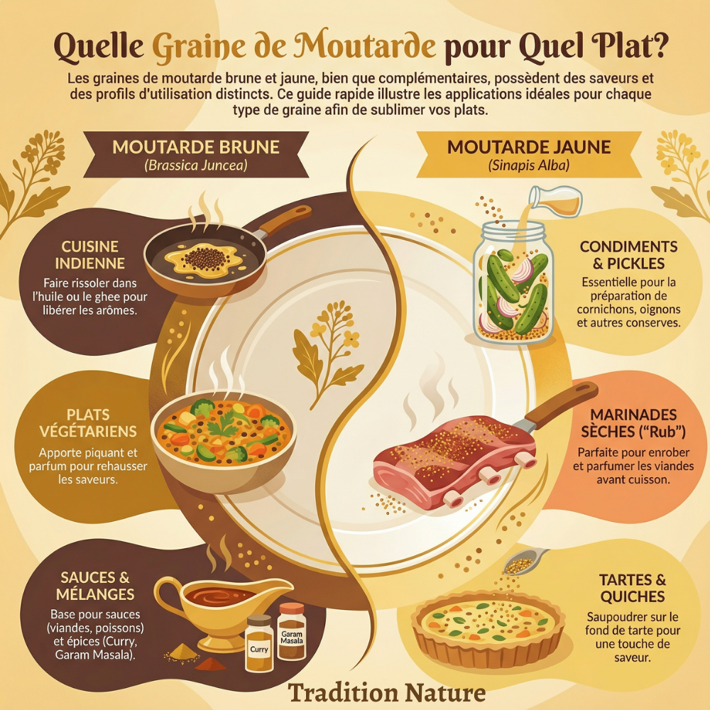 La moutarde brune peut être utilisée de différentes manières en cuisine.