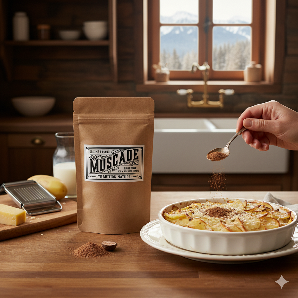 Sécurité : à l’usage culinaire (pincées), la muscade est sûre pour tous. Les surdosages volontaires (plusieurs grammes) peuvent provoquer des troubles digestifs et neurologiques : respectez toujours l’utilisation alimentaire.