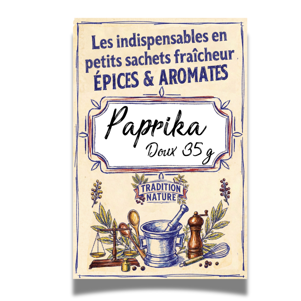 Notre paprika doux en poudre est issu du fruit séché et moulu du piment doux Capsicum annuum. Avec sa saveur suave, légèrement fruitée et sans piquant, il apporte de la couleur et de la profondeur aromatique à vos plats. Conditionné avec soin par Tradition Nature, il conserve toute sa fraîcheur et ses vertus naturelles.